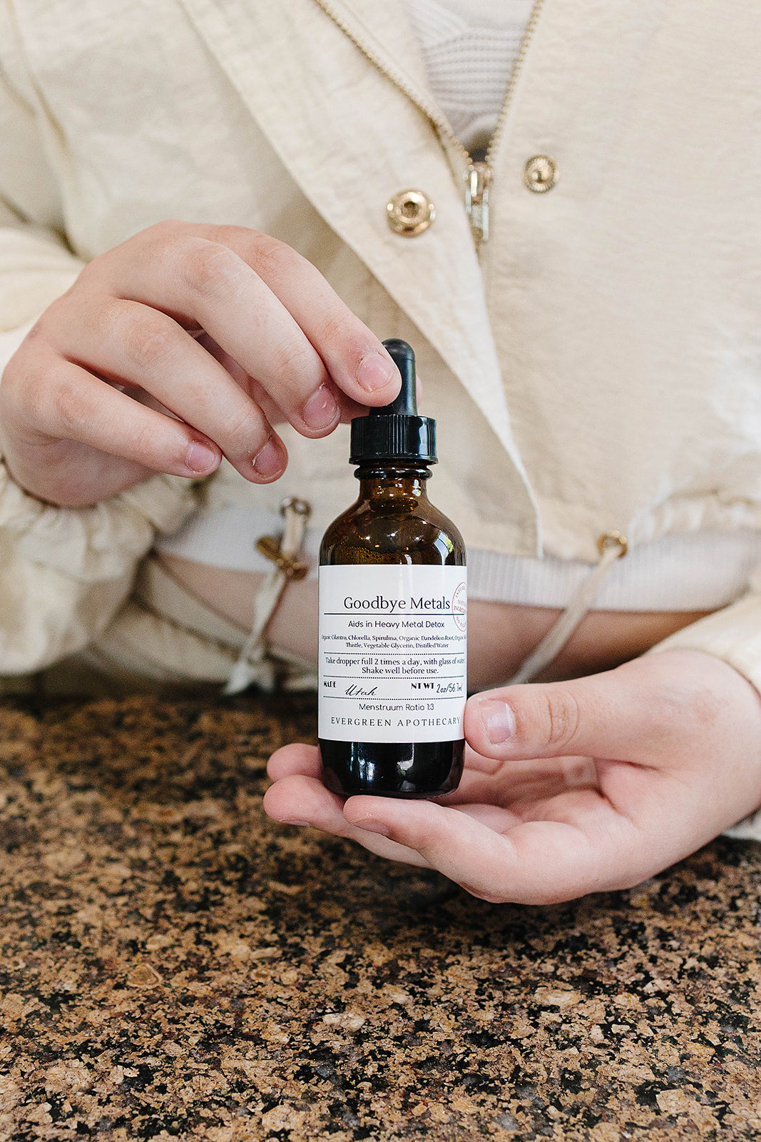 Goodbye Metals is our heavy metal detox. It contains Chlorella, Spirulina, Cilantro, Dandelion Root, and Milk Thistle. These herbs specifically bind to mercury, lead, cadmium, arsenic, nickel, arsenic. It also contains herbs that aid in liver support (stimulates bile production and liver detox enzymes, which enhnaces phase II conjugation).
