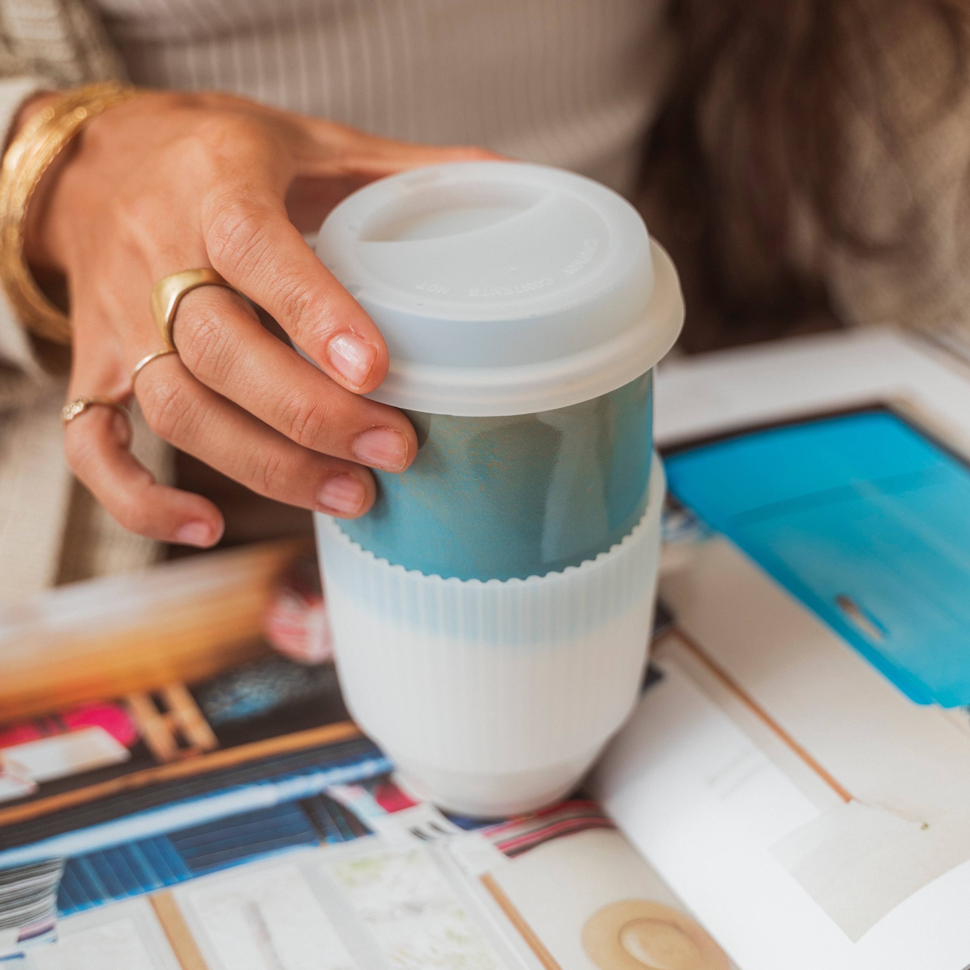 Lagoon Ceramic Travel Cup – 16oz with Lid & Sleeve