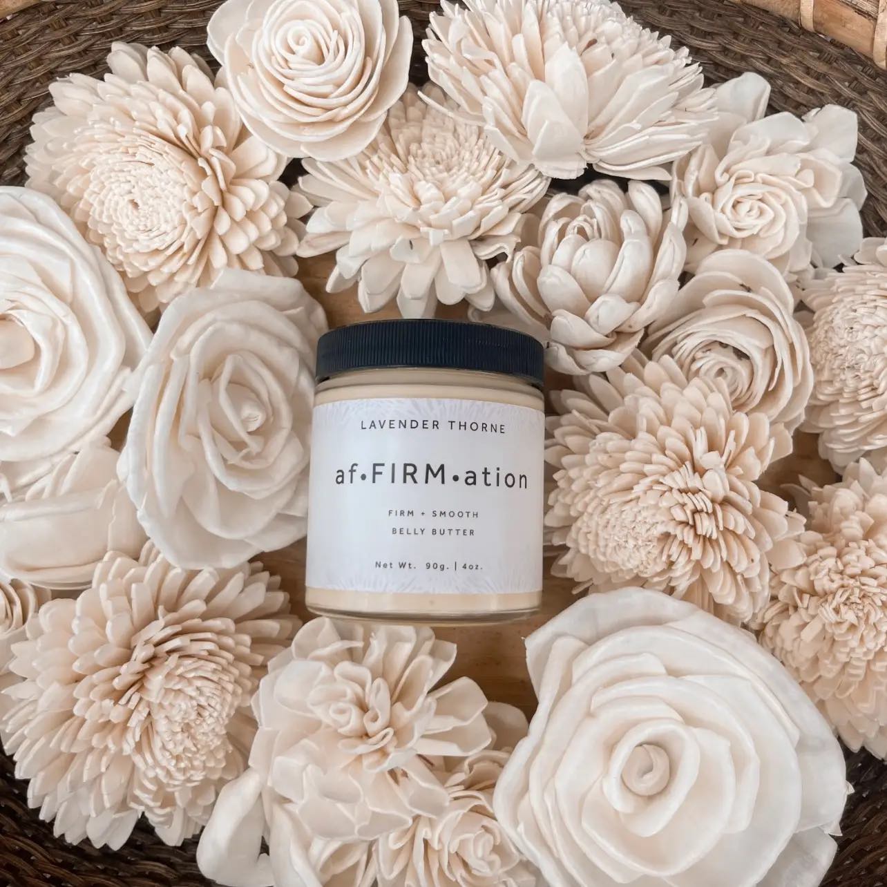 Made with: Raw Shea Butter, Organic Mango Butter, Pure Coconut Oil, Grapeseed Oil, Rosehip Oil, Sweet Almond Oil, Extra Virgin Olive Oil, Argan Nut Oil, Lavender, Rose, Lemon, Neroli, Calendula, Frankincense, Copaiba, Sweet Orange, Sandalwood and Vanilla Therapeutic Grade Essential Oils.