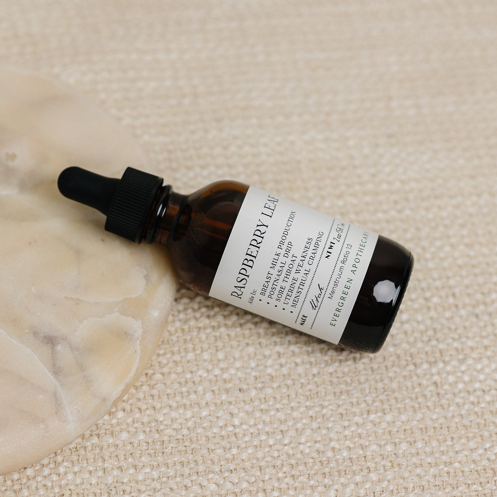 Made with: Organic red raspberry leaf, distilled water, and glycerin.